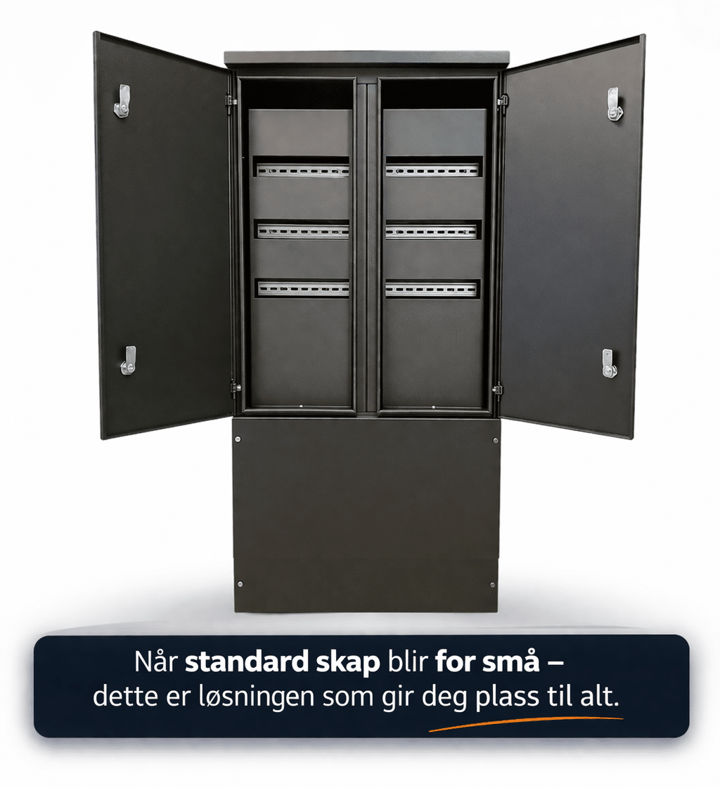 Modulært fordelingsskap med kapasitet på 72 moduler for utendørs installasjon iht. NEK 399.