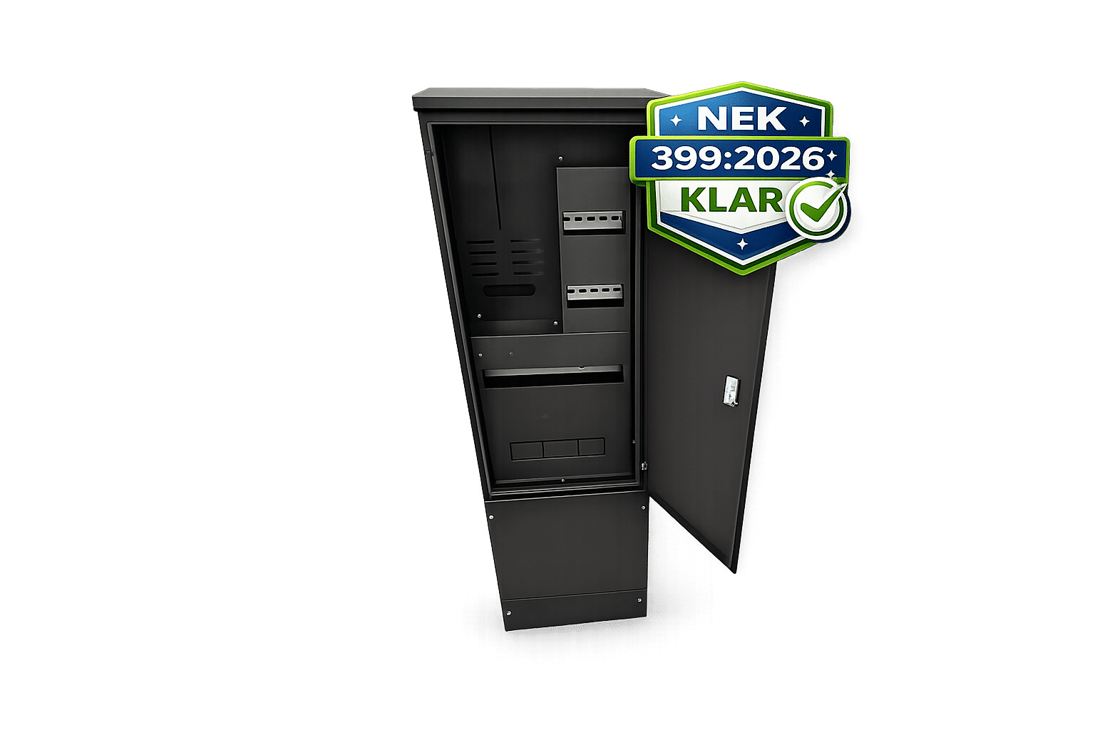 Tilknytningsskap 400V TN – ferdig koblet og klar for installasjon. Leveres komplett fra produsent med vern, målerløsning og interne koblinger. Robust løsning tilpasset NEK 399 med god plass til fremtidige utvidelser.