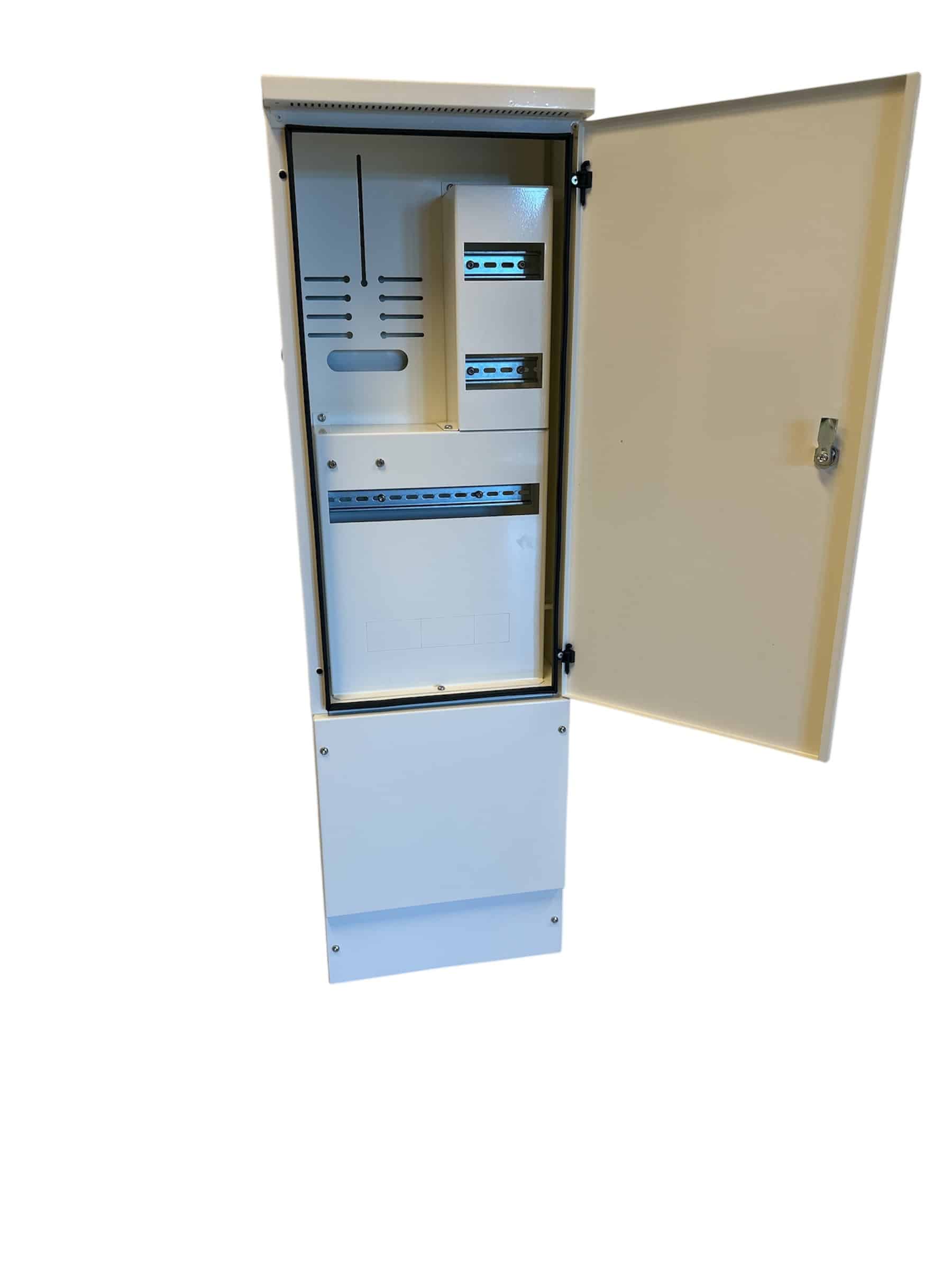Som innlogget bruker kan du her prosjektere og prise utvidede løsninger for veillysskap opptil 80A for direktekoblet Everksmåler og maks 95 mm2 tilførsel.. Ved større løsninger opptil 160 A og trafokoblet måler prosjekterer man enkelt dette med produktet trafokoblet måler og velger komponenter der som hører til. Opptil 48 modulers plass for sikringsutstyr eller 72 moduler med kontaktorer og annet modulært materiell. Hvis det er for lite med 72 moduler, bygger vi bare videre med flere skap ved siden av hverandre og vi leverer løsningen komplett ferdig med alle sammekoblinger i Past-slange (Nåtidens panserslange) ferdig tilpasset for innkobling på anvist sted.